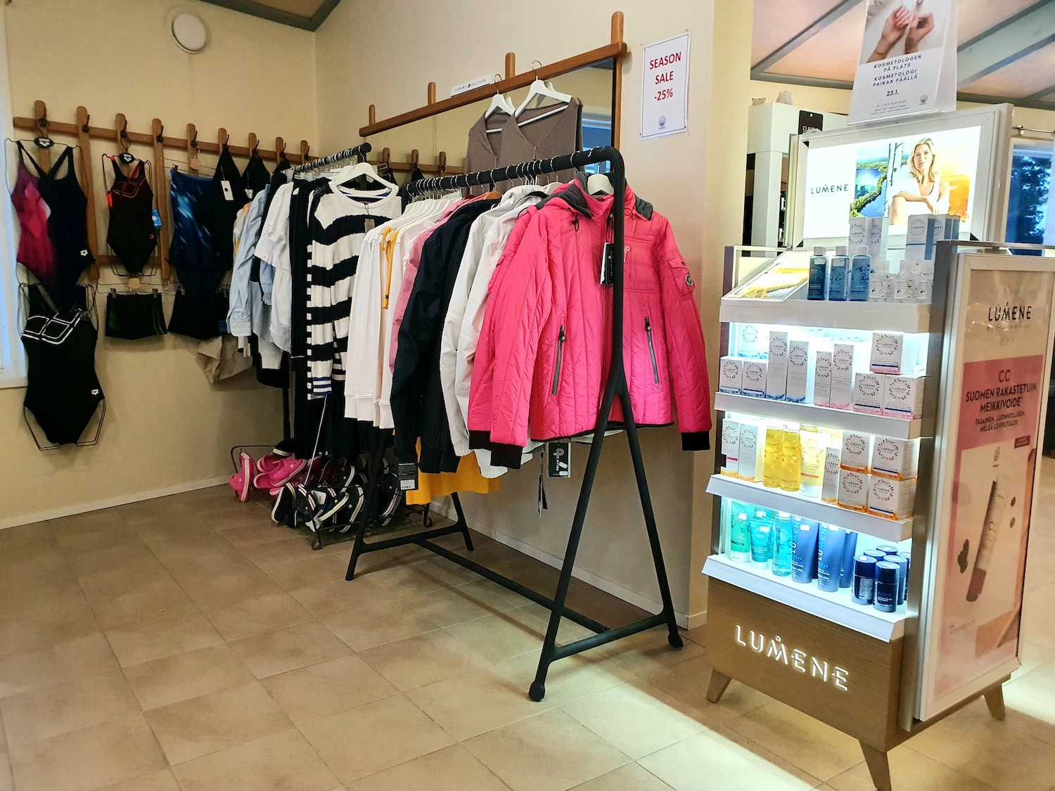 Hotel and Caravan bookings, bookings for beauty treatments and water exercise, spa and gym, swimming suite and towel rental, minigolf, boule, tennis, equipment for Nordic walking, board games, first aid and defibrillator.